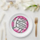 Fêtez votre fête d'anniversaire de volley-ball avec ces amusantes plaques de papier de volley-ball rose.