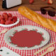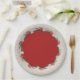 Berries rouges, pignons de pin, fleurs blanches sur un arrière - plan en ivoire texturé avec insert rouge, ces plaques de papier de vacances sont en deux tailles, 7" ou 9". CORRESPONDRE des articles dans notre magasin.