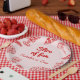 Comme vous le voyez cette pizza italienne unique et élégante première plaque de papier 1er anniversaire a un modèle bien conçu. Avec des tranches de pizza dessinées à la main rouge et des verres de champagne, des raisins et des bougies et avec une tranche de plaisir écrite à la main. Tout sur arrière - plan rose. Vous pouvez facilement customiser en cliquant sur le bouton de personnalisation.