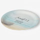 Plaques en papier baby shower avec une belle image rustique. Couleurs subtiles de bleu clair, marron sablonneux et blanc doux. Une scène de plage avec un bateau sur le rivage avec un filet de pêche accroché à côté. Un élégant look défraîchi.