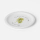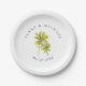 Modernes et chics, ces assiettes et bols en papier présentent une typographie élégante entourée d'une belle aquarelle peinte de palmiers tropicaux. Peinture inspirée du littoral de Père Noël Barbara. Suite de mariage complète correspondante disponible.