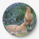 Caractéristiques de cette plaque à papier 2 poulets de couleur chamois d'orpington se reposant parmi la sauge russe. Grand pour des parties et des pique-niques. Choisissez votre plat de taille.
