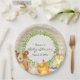 Cette plaque en papier baby shower présente d'adorables animaux de bois et un motif en écorce légère. Ajoutez votre personnalisation à l'aide du formulaire modèle. Tout le texte est modifiable.