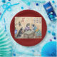 Aquarelle originale de Chiens de Mahjong sur une plaque de papier rouge profond