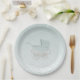 Plaque de papier baby shower glamour et moderne faite en vert menthe avec fausse parties scintillant. Les graphiques d'un chariot bébé vert menthe ornent le milieu de l'assiette. Customisez d'ajouter le texte que vous voulez.