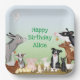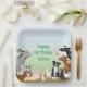 Célébrez l'anniversaire d'un enfant avec style avec cette plaque en papier carré d'animaux de ferme mignonne avec un âne, une oie, une poule et ses poussins, une chèvre bébé, un porcelet, un lapin, deux agneaux, un collie frontalier, un chat noir et une vache et son veau. Le texte peut être personnalisé comme vous le souhaitez.