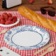 Elégante plaque de papier bleu et blanc pour grand-mère côtière, chinoiserie, ou bleu et blanc thème mariage ou fête.
