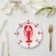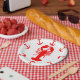 Plaques de fête en papier avec l'image d'un homard rouge avec garniture d'ancrage rouge contre un arrière - plan blanc.