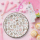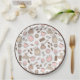 Cette assiette en papier est dans les tons pastel marron, beige, rose blush et blanc. L'assiette est conçue avec du café haricot, cafetière, sucré, cupcake, tasse et soucoupe, beignet et moulin à café en levain.