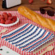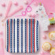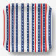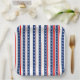 Plaque de papier carré alternant rayures rouges, blanches et bleues avec étoiles.