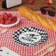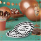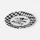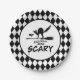Plaque en papier est affichée avec un imprimé d'Halloween arlequin. Couleur Noir & Blanc Customiser cet article ou acheter tel quel. Image stock