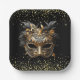 Plaques de papier de la fête mardi Gras moderne, avec masque peint et parties scintillant dorée sur le noir. Élégant, audacieux et festif.