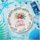 Belle plaque en papier avec une couronne Holly, poinsettia rouge et feuilles verts et jaunes avec un script "Joyeux Noël". Bonne idée pour une fête de Noël.