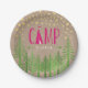 Plaque en papier, rustique mais chic, pour une soirée à thème "Glamping", avec tente dans une forêt d'arbres sous des étoiles dorées à faux papier.