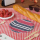 Assiettes En Carton Plaque papier à rayures rouge, blanc et bleu Prepp