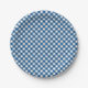 Plaques en papier motif bleu en vichy. Ils fabriquent de bonnes assiettes pour un pique-nique ou un barbecue. Pour ajouter du texte, cliquez sur personnaliser. *Veuillez noter que le filigrane Zazzle qui apparaît dans l'aperçu du zoom n'apparaîtra PAS sur le produit imprimé final. © Bois de rose et agrumes
