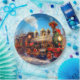 Plaque en papier d'Express Noël/Fêtes - les couleurs sont rouge, noir, or, bleu.