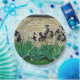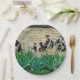 Un lit d’iris à barbe violet foncé montrant la barbe bleue, dressé contre une paroi calcaire