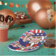 Oncle Sam sur une plaque en papier arrière - plan rayé et étoiles. Des serviettes et des tasses assorties sont disponibles.
