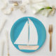 Ces grandes plaques en papier sont conçues avec ma représentation d'un voilier blanc sur un arrière - plan turquoise.
