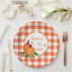 Ces assiettes en papier orange et blanc sont parfaites pour toute célébration d'automne (baby shower, anniversaire, collecte de fonds, Halloween, Action de grâces, Action d'Ami, etc) que vous pourriez avoir à venir. Il a un classique En vichy motif, deux citrouilles et quelques feuilles d'automne brunes. Personnalisez avec un nom et des informations d'événement en utilisant le modèle. © ArianeC Illustrations-Tous droits réservés