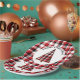 Ces plaques en papier de Noël de vacances présentent un plaid rouge, blanc et noir pour l'arrière - plan. Un cercle blanc apparaît au centre où se trouve un sapin de Noël rouge, blanc et noir. Ce design ajoutera une touche vintage à votre table de vacances. Copyright Kathy Henis