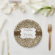 Chic, moderne, joli animal sauvage gros chats assiettes en papier empreinte de léopard brun, bronzé, pêche avec une bande brune et blanc bordé de bannière marron que vous pouvez personnaliser avec les noms du couple mariage et date mariage!