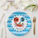 Crabe rouge personnalisé 5e plaques de papier d'anniversaire, mignonette et colorée, idéal pour toute fête d'anniversaire à thème océan ou mer, dispose d'un crabe rouge dans un casquette à pointillés de pois tenant des ballons rouges et bleus entourés de confettis! Ces plaques de papier de crabe rouge de l'océan sont recouvertes d'une bordure de vagues bleues et d'un texte qui dit : J'ai 5 ans ! Vous pouvez facilement ajouter le nom de l'enfant d'anniversaire pour personnaliser ces plaques de crabe rouge de cinquième anniversaire.