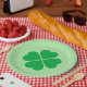 La plaque en papier est affichée dans un imprimé de trèfle vert St. Patrick sur la plaque ronde de style. Customisez cet objet ou achetez tel quel. Image stock vecteezy.com