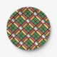 Plaques de Noël festives avec un motif en plaid en bonbons à l'ancienne. Rouge, vert, jaune et blanc.