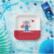 De très jolies plaques en papier rouge et blanc ornées d'un éléphant de bande dessinée tenant quelques fleurs et diffusant un peu d'amour et de bonté. Parfait pour une fête de la Saint-Valentin pour enfants ou un baby shower. Recherchez des serviettes en papier et des tasses en papier assorties. © ArianeC Illustrations-Tous droits réservés
