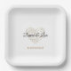 Affichées ici sur une plaque en papier blanc de style carré, ces assiettes ont un coeur d'or créé de tourbillons avec les noms de couples surlignés. Le nom de famille figurant sous le nom en caractères gras. Customisez cet article et changez les noms d'exemples dans le vôtre. Coordonnées avec les "invitations au mariage du Temple du Coeur d'Or" et le Ballotin du Coeur d'Or. Des serviettes en papier assorties sont disponibles.