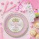 Superbe Plaques Papier Pink and Gold Personnalisées. Choisissez ces assiettes de 20 cm ou les assiettes de princesse de 20 cm. Tapez votre texte de parti à thème princesse dans les 2 modèles de la zone de texte ou supprimez. Une tiara dorée sur un beau cercle de satin blanc au milieu des plaques de princesse avec 2 zones de texte avec votre soirée thématique princesse et nom et ou dates ou supprimer tout ou partie du texte temporaire.