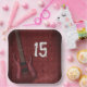 Plaques de papier de fête d'anniversaire de guitare avec âge. Rouge, design de guitare électrique sur des assiettes carrés, ou rondes, pour la célébration d'anniversaire d'un adolescent.