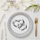 Plaque de papier de fête de mariage en couleur argent autour de la jante avec un design d'impression de deux coeurs au centre. Montré en 9 po de taille. Vendu en paquet de huit. Customisez cet objet ou achetez tel que conçu.