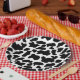 Motif de vache noir et blanc sur plaques de papier de 9". Idéal pour les animaux de ferme, baby showers ou fêtes d'anniversaire.
