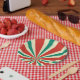 Assiettes En Carton Plato Papel Radial Verde, Rojo y Crema