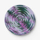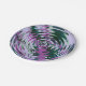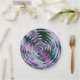 De jolies assiettes de fête arborent un motif géométrique tourbillonné dans les tons violets et verts. Le Motif ressemble un peu à certains styles de teinture de cravate. Parfait pour un anniversaire ou une fête d'anniversaire.