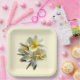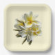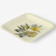 Plumeria jaune et blanc, jolie plateaux en papier. À utiliser pour les anniversaires ou les mariages lorsqu'une élégante assiette jetable fleurie est nécessaire. Des fleurs frangipaniennes blanches réalistes aux centres et bourgeons jaunes ornent le centre des plaques rondes ou carrés de couleur jaune pâle.