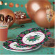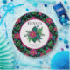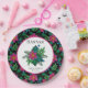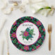 Ce motif floral plein de vitalité et fantaisie est un cadre romantique et merveilleux pour tous ceux qui aiment les couleurs vives et les thèmes botaniques. Le feuillage vert vif et joliment ombragé de feuilles et de frondes de fougères jagués flottant sur un arrière - plan noir avec des bourgeons bleus et des fleurs roses/oranges chaudes fait une palette magnifique pour une douche nuptiale, mariage, ou anniversaire. Ce design est parfait pour tous ceux qui aiment les couleurs vives et saisissantes dans un style fantaisiste, romantique.