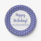 Plaques personnalisées modernes de fête d'anniversaire en périwinkle / violet / bleu et blanc pois. Il a le message, "Joyeux anniversaire ! Alexander" dans la typographie stylisée et.a periwinkle / violet / bleu et blanc motif pois. Pour personnaliser, tapez simplement votre nom dans la zone de texte personnalisée. Pour modifier la couleur, la police ou le motif, consultez l'outil d'édition de conception. Parfait pour la vaisselle de fête d'anniversaire personnalisée et les fournitures de fête. Si vous avez besoin d'aide pour la personnalisation, la mise en correspondance de produits ou pour une conception personnalisée, contactez-moi par l'intermédiaire de zazzle conversation ou par courriel : ursuladawnmoon@gmail.com