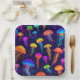 L'assiette elle-même pourrait être un bleu océanique vibrant ou un aqua ludique, servant de décor parfait pour le motif méduse. Au centre, une méduse fantaisiste aux tentacules flottantes dans une variété de couleurs vives flotte gracieusement. Son corps translucide et ses teintes irisées captent l'essence de la beauté sous-marine et de la vie marine. Ce design évoque un sentiment d'émerveillement et de fascination, le rendant idéal pour des fêtes sur le thème de l'océan, des rassemblements de plage ou tout événement célébrant le monde enchanteur sous les vagues.