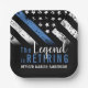 Cette conception comprend un drapeau de la police avec des rayures noires et blanches, ainsi qu'une fine bande bleue. Le texte "La légende prend sa retraite" se trouve au-dessus du nom personnalisable de l'officier, du shérif, du capitaine ou du chef de l'autorité qui prend sa retraite. Célébrez cette étape importante en style!