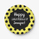 Assiettes En Carton Polka Noir & Jaune Point Personnalisé Anniversaire