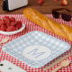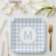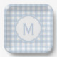 Assiettes En Carton Poudre Pâle Motif Gingham à Monogramme Bleu