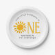 Prévoyez-vous une fête de premier anniversaire ? Ces assiettes en papier de première fête sont décorées d'une aquarelle jaune. Ils sont facilement personnalisables. Aquarelle originale © Michele Davies.