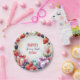 Terminez votre fête sucrée de baies avec cette belle assiette de fête d'aquarelle! Doté d'une élégante bordure circulaire de fraises vibrantes, de bleuets et de mûres, ce design comprend également des cadeaux d'anniversaire de couleur pastel attachés avec de jolis arcs en satin. Le centre affiche votre message d'anniversaire personnalisé en lettres modernes et amusantes. Cette assiette, qui correspond parfaitement à l'invitation et à la décoration du "Berry First Birthday", apporte charme et couleur à la fête de votre petit. Idéal pour les anniversaires à thème fraise, jardin ou lapin !