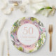 Elégant boho style violet, rose et jaune aquarelle floral avec or parties scintillant 50ème anniversaire plaques de papier personnalisées avec votre nom, âge (n'importe quel âge), et date de fête.