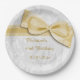Plaques à papier élégantes de fête d'anniversaire pour des femmes. quatre-vingt-quinzième plats de fête d'anniversaire pour des anniversaires. Bel arrière - plan blanc de motif de damassé avec un jolis, élégants arc d'or et image romantiques de ruban. Ces plaques à papier de partie faite sur commande fascinante, chic, chique sont admirablement sophistiquées et sont sont parfaites pour tous les âges. Tout le texte est entièrement personnalisable pour répondre à vos exigences. NOTEZ SVP : Toutes les sélections de gâteau sur Zazzle ont des images imprimées d'appartement. Images d'arc et de ruban achetées de numérique-conception-par-Elena. Si vous avez besoin de n'importe quelle aide customisant votre produit svp me contactez par mon magasin et je serai heureux d'aider.