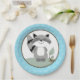 Raccoon Woodland Nature Papier Plaque avec une bordure bleue (turquoise). Ce plat super mignon serait très bien pour une fête d'anniversaire à thème boisé ou un baby shower boisé! Disponible en d'autres couleurs également : Zazzle.com/allpetscherished*